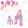 A Penteadeira da Princesa vem completa com tudo o que uma princesa moderna precisa para criar os visuais mais deslumbrantes. Na embalagem, você encontrará: 1 penteadeira, 1 cadeira, 2 tesouras, 1 espelho em formato de flor, 4 florezinhas, 1 secador de cabelo, 1 pente, 4 pulseiras, 1 manual de montagem. As crianças podem criar histórias emocionantes, experimentar visuais únicos e mergulhar em aventuras repletas de magia e estilo.