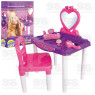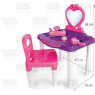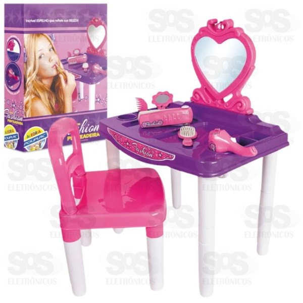 Sentar na cadeirinha, se olhar no espelho e utilizar o kit de pentes e escova para deixar os seus cabelos arrumados e não poderia faltar um secadorzinho e a mini-chapinha para fazer igual gente grande.