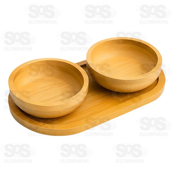 Petisqueira de Bambu Com 2 Tigelas TOP2264