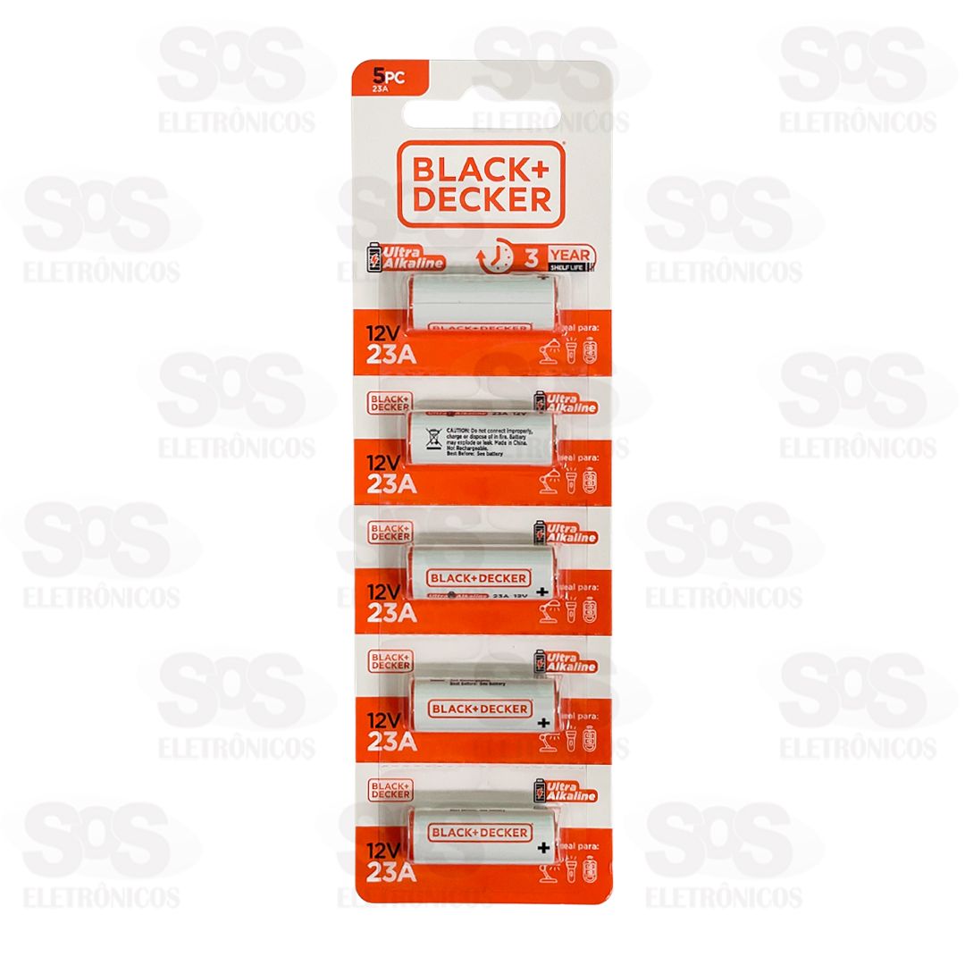 Pilha Ultra Alcalina 23A 12V 5 Unidades Black+ Decker