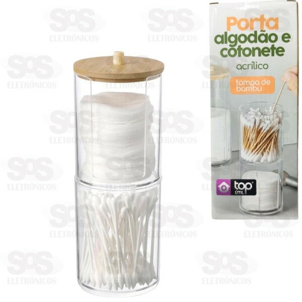Porta Cotonete e Algodão Duplo Tampa de Bambu Top Útil 1458