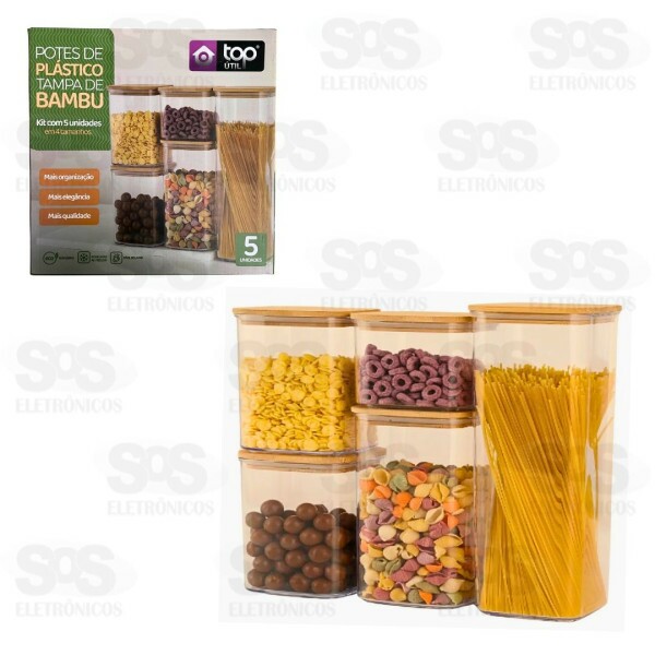 Pote De Plástico Com Tampa De Bambu 5 Unidades TOP1925