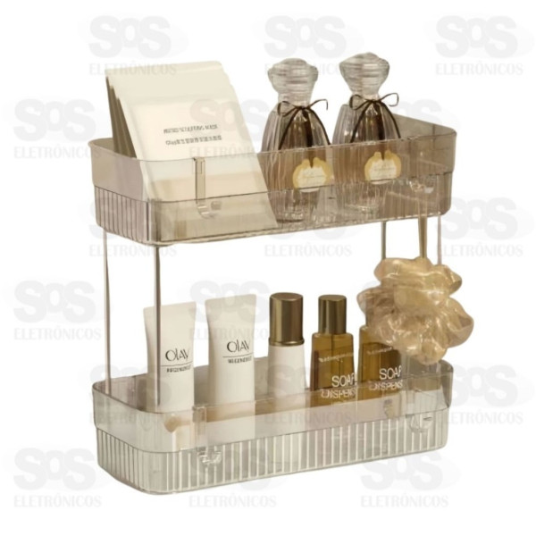 Com um design moderno, prateleiras duplas espaçosas e estrutura resistente, ele é ideal para armazenar cosméticos, perfumes, produtos de skincare e maquiagem no banheiro ou penteadeira.