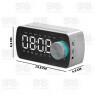 Relógio digital com despertador e caixa de som, ideal para deixar ao lado da cama.