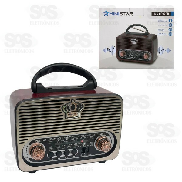 Rádio Retrô Portátil 5W Bluetooth Ministar MS-8092BR