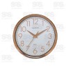 Sua borda é em polipropileno na cor dourada e o fundo do relógio em branco.