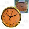 Sua borda é em polipropileno na cor dourada e o fundo do relógio em madeira visor em PS cristal.