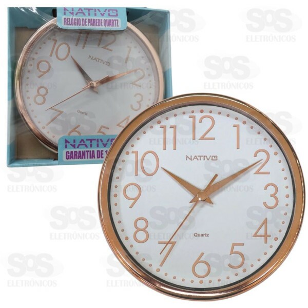 Relógio De Parede Metalizado Rose e Branco Nativo 805100