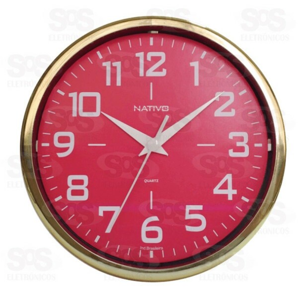 Relógio De Parede Redondo Metalizado Dourado e Vermelho Nativo 80409-7