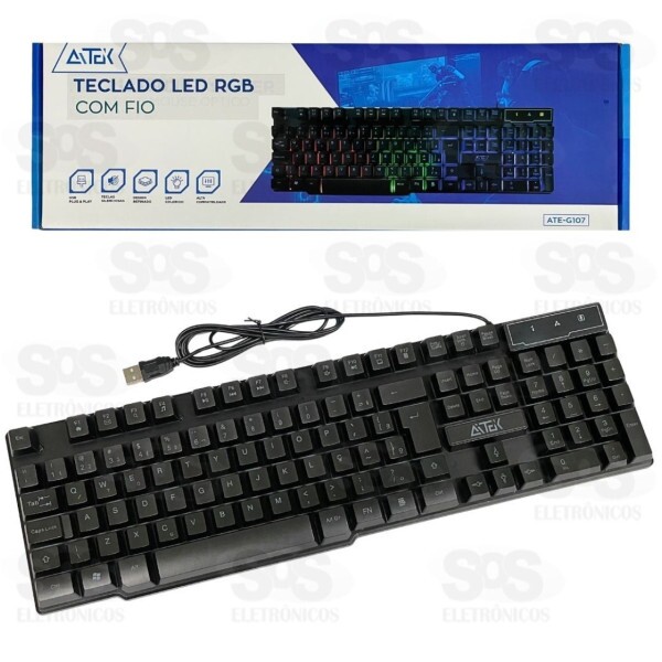Teclado LED RGB Com Fio USB Aitek ATE-G107