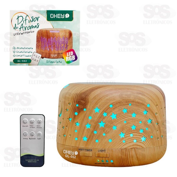 Umidificador Difusor Aromático Com LED 300ML Ohey DL-552
