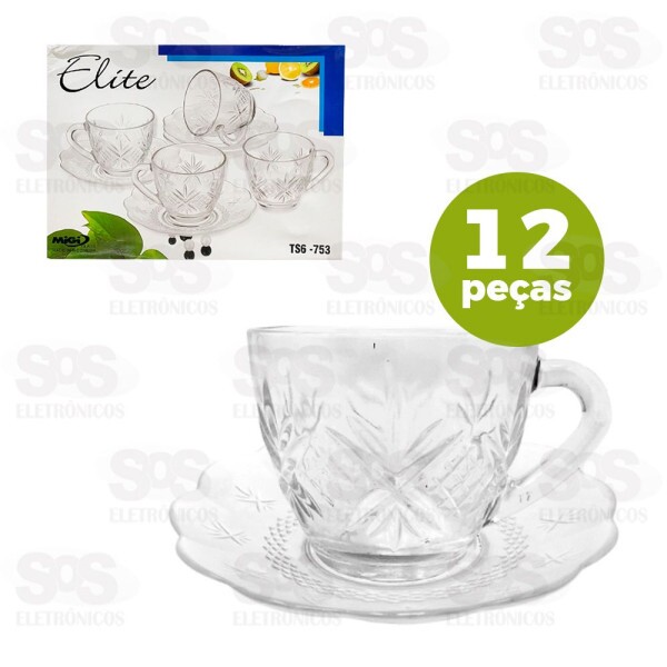 Conjunto Xícaras e Pires Elite 12 Peças TS6-753